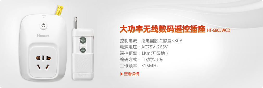 • 大功率無(wú)線(xiàn)數(shù)碼遙控插座(1KM)